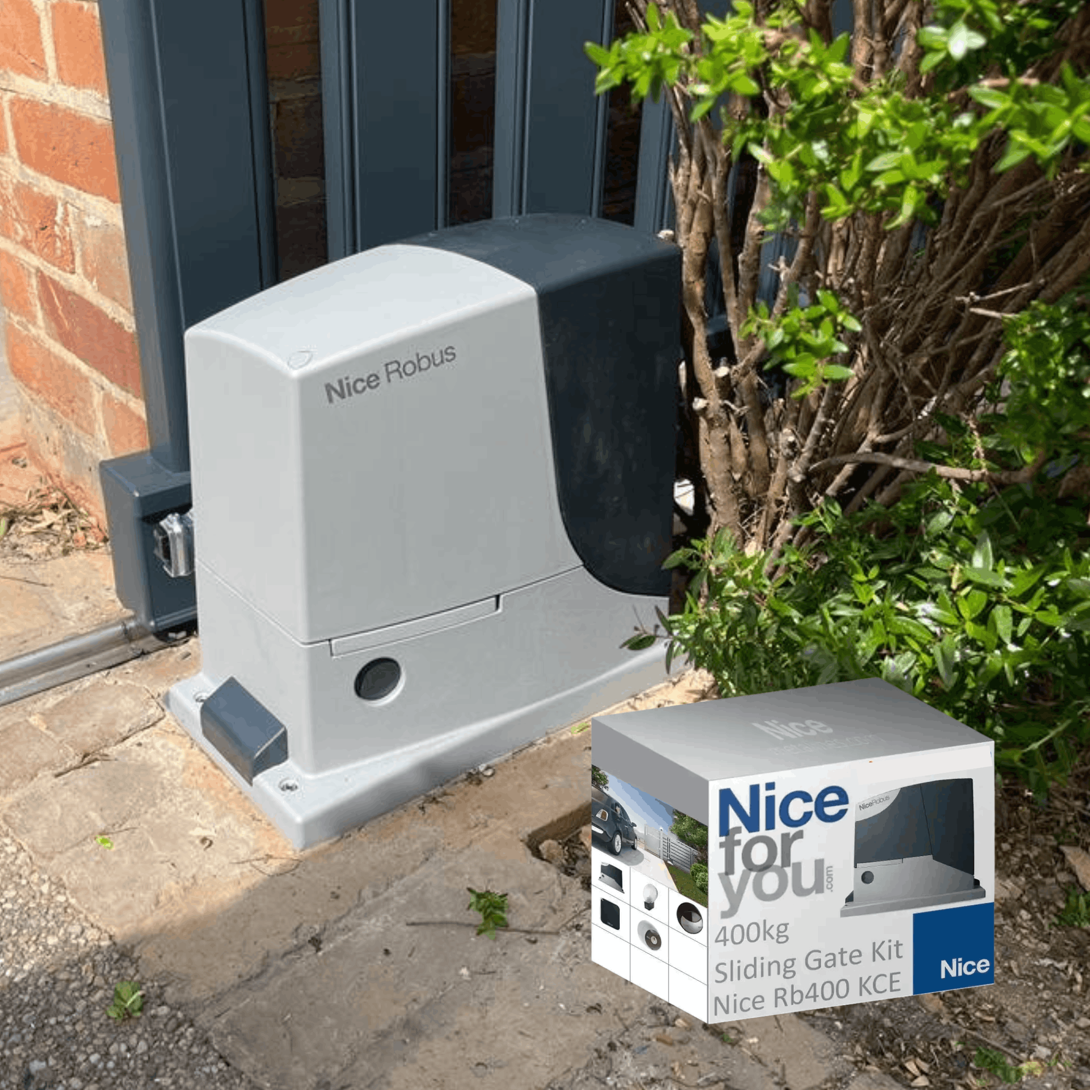 An electric gate opener for your sliding gate with an opening speed of 20m/min with pair of keyfobs and safety sensors, all in one-kit.